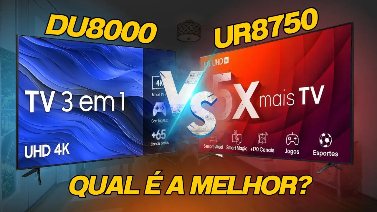 Finalmente, a maior rivalidade da tecnologia na sua sala. No duelo Samsung DU8000 vs LG UR8750, temos as duas TVs 4K mais vendidas do Brasil. De um lado, a Samsung com seu design fino e contraste alto. Do outro, a LG com seu controle inteligente e cores estáveis.
